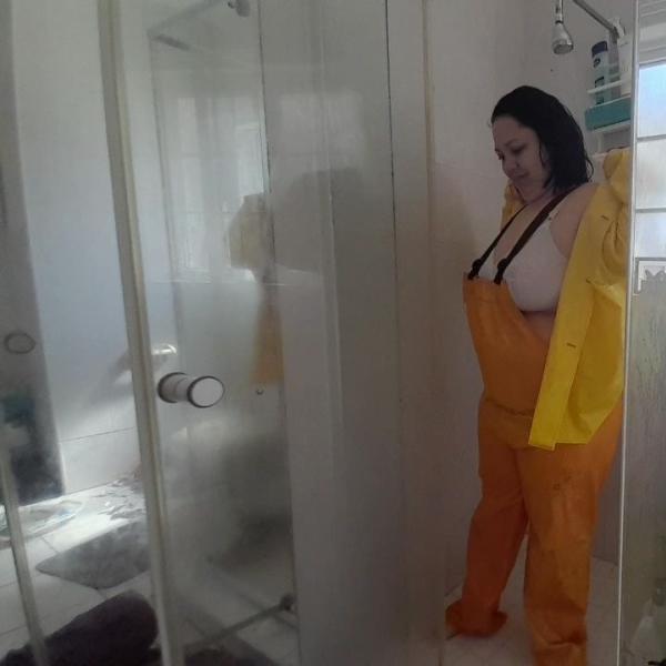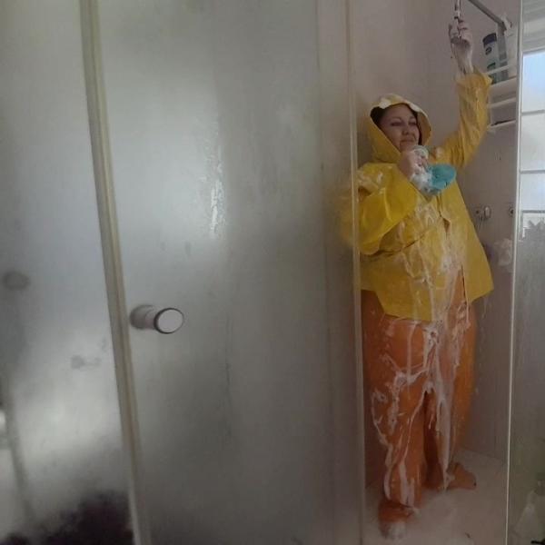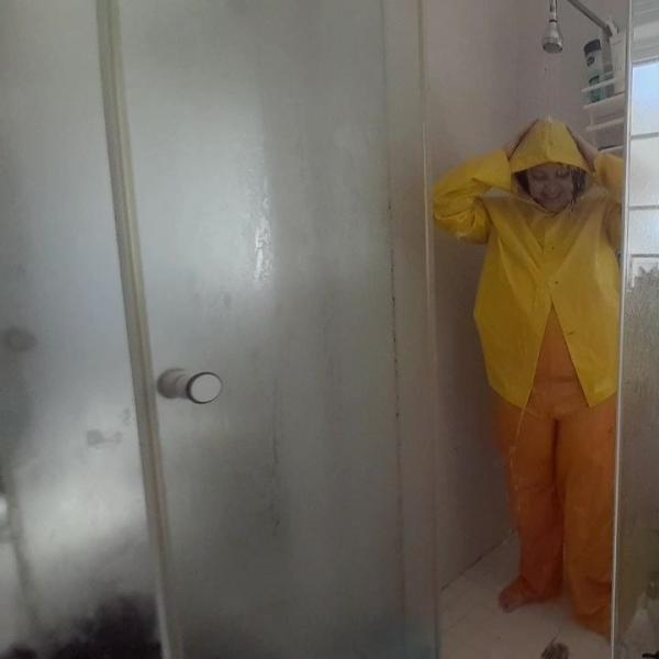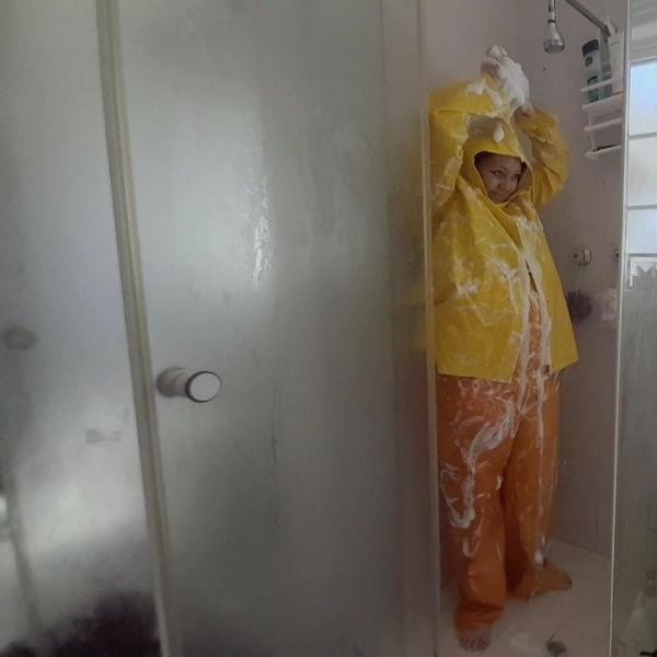 Soapy Rainwear in the Shower