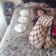 Wearing a black bra and panty and a body stocking, with seductive high heels, I lay on the bed while taking pies to the face and crotch and cover my body in cream.