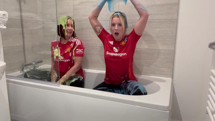 Belle and Emily have lost a bet and it's time for their forfeit! Lots of gunge and pies in their favourite Man United shirts!