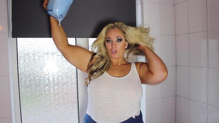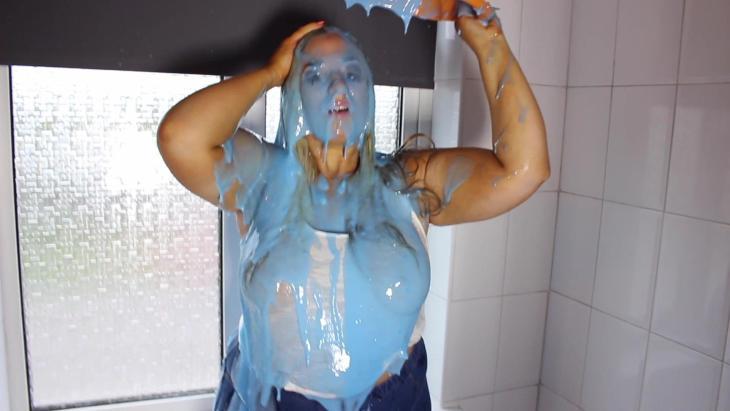 In this scene, Kellie plays your step mum, and she has just found about your gunge fetish! She teases you about it before revealing she has a little gunge fetish of her own! She knows your dad won't be home for hours so suggests going into the bathroom and having a bit of messy fun. She's wearing a white top and light blue jeans, ready for a very messy gunging! She gets in the bath and scoops out the first jugful of gunge and starts to pour it all over her head! Kellie continues to pour jug after jug all over her head, teasing you about how much you must be loving this. She then picks up the rest of the bucket and pours it all over her head. Kellie then gets her boobs out and pours a jog of gunge all over them, rubbing it all in, teasing you more and more!