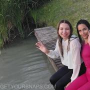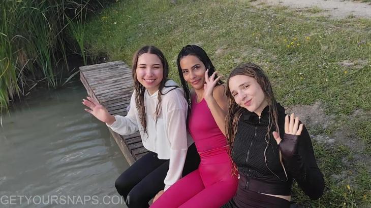 The third chapter of our lake series brings all three girls together! Violet steps into the water wearing a striking black and burgundy workout outfit, joining Ellie and Gina for a playful, splash-filled session.