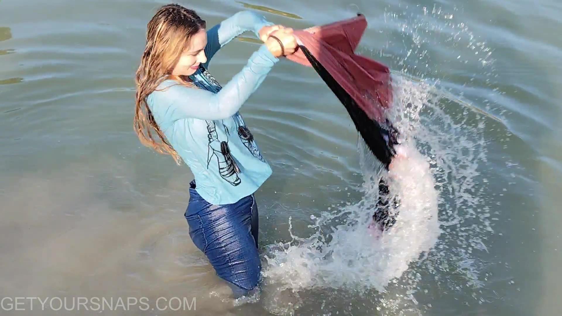 The sight of denim slowly darkening and clinging to her legs makes it a true wetlook classic. And there’s more to come — the next part will feature Caroll joining Violet for a double splash!