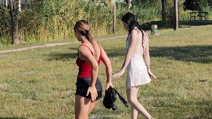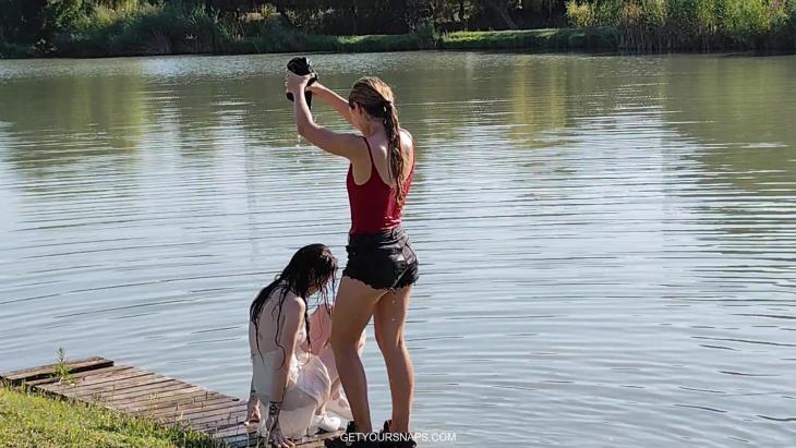 Carol heads to the lakeside already soaked, and it doesn’t take long before Violet decides to join her in the water fully clothed. The two step into the lake together, laughing as their outfits slowly get drenched from top to bottom. They splash, play, and enjoy the warm sun shimmering on the surface of the water. Their clothes cling tightly to them as they move, making every jump and kick in the water even more fun to watch. Carol even helps Violet smooth her soaked dress after it sticks to her from the lake water. They enjoy the simple joy of getting wet together, exploring the water, sitting on the dock, and jumping back in for more. With genuine smiles, playful moves, and dripping wet outfits, this is the kind of carefree wetlook moment that feels like summer fun at its best.