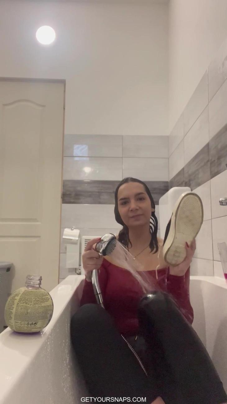 This is a rare and intimate home video from Hanna, filmed in her own bathroom. Calm, playful, and natural, the video captures her relaxed mood as she slowly gets soaked in her clothes, enjoying the water and the moment.