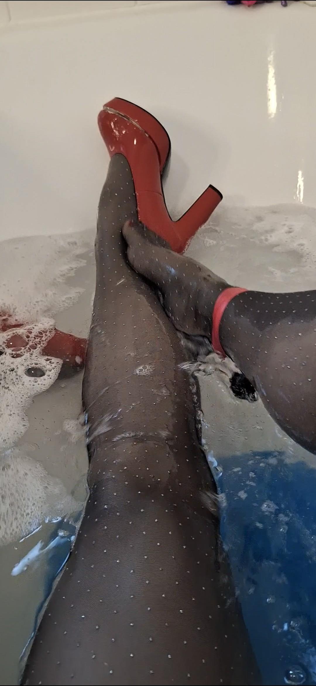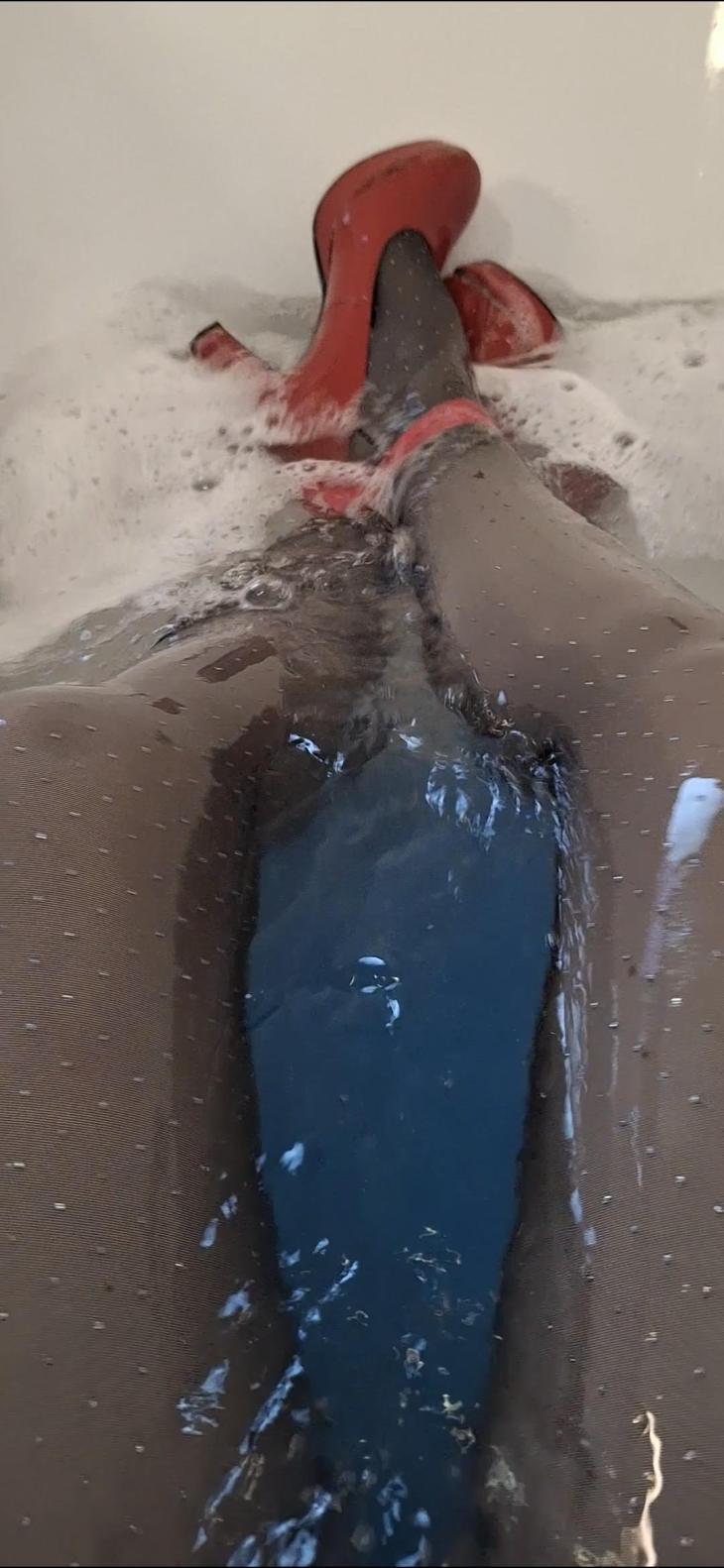 Watch me in the bathtube in my black calzedonia nylon tights and red highheels with white wet shirt... merry christmas, sweety