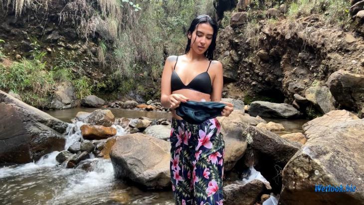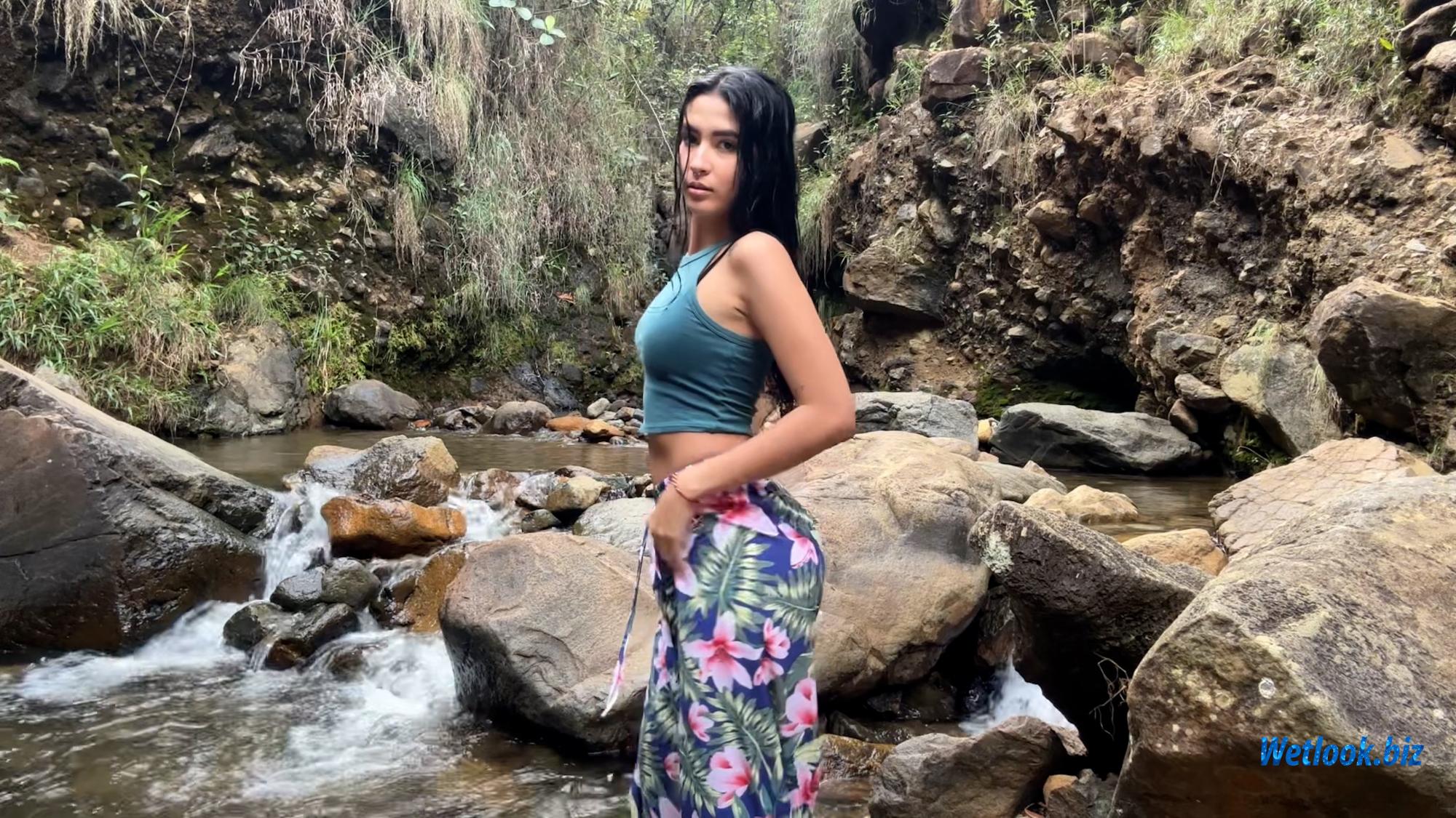 This video captures a natural outdoor wetlook experience as clothes slowly become soaked in a calm, relaxing environment.