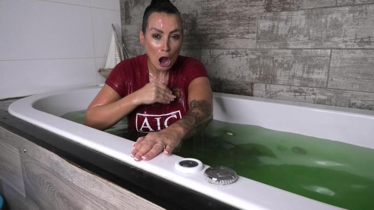 She strips down to her underwear and gets ready for her gunging, covering herself in gooey purple gunge, using 3 big cartons to completely cover herself from head to toe!