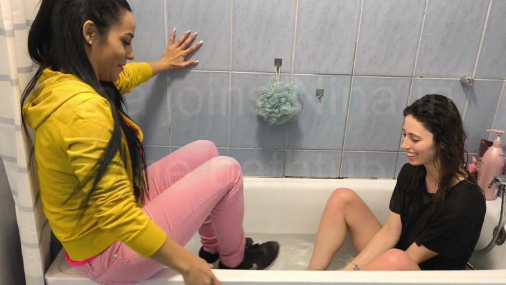 Gina joins Nina in the bathtub