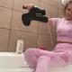 Olga gets wet in her pink suite