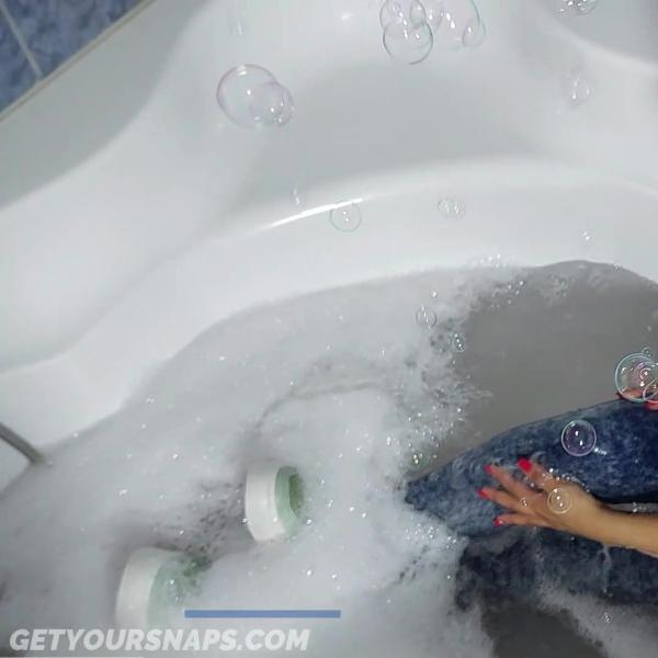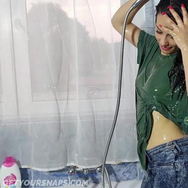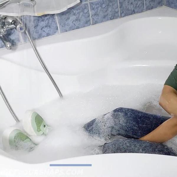 Gina took a hot and foamy bath in jeans and t-shirt (She didn't wear a bra under t-shirt)
