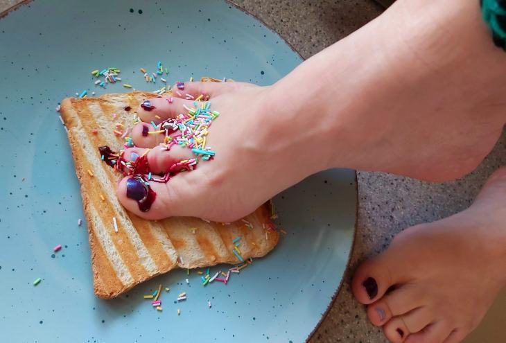 21sek Fußtoast mit Zuckerglassur und bunten Streuseln, Geburstagstoast :)