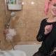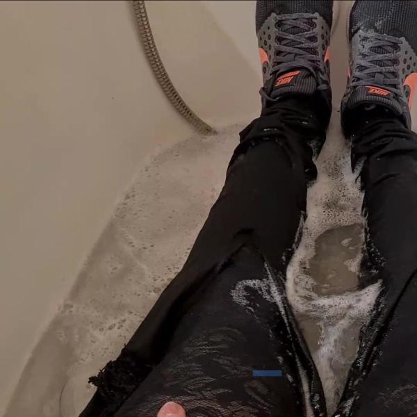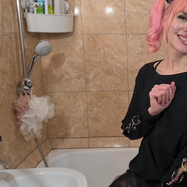 Pinkie takes a shower in her ripped jeans