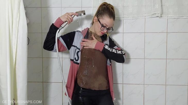 Watch as Mina showers in black leggings and a white sweater in this video. 10:23 min fullHD video