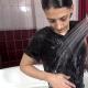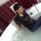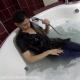 Mina gets wet in jeans in the hot tub