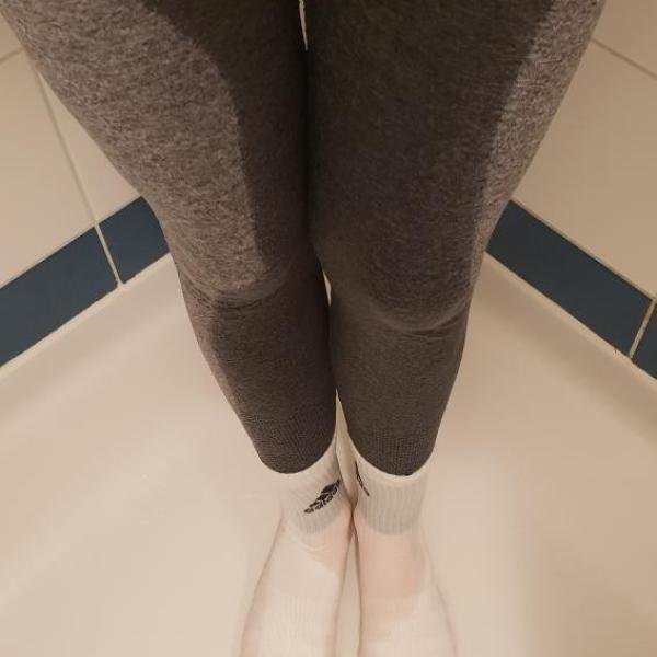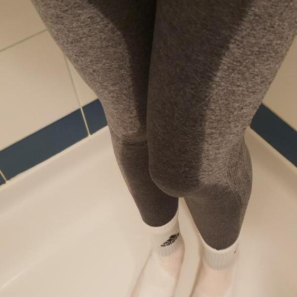 Maria pisses in her unbranded leggings