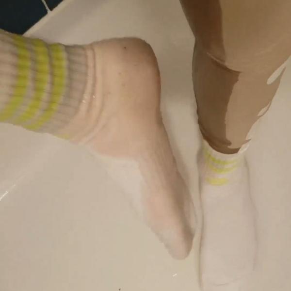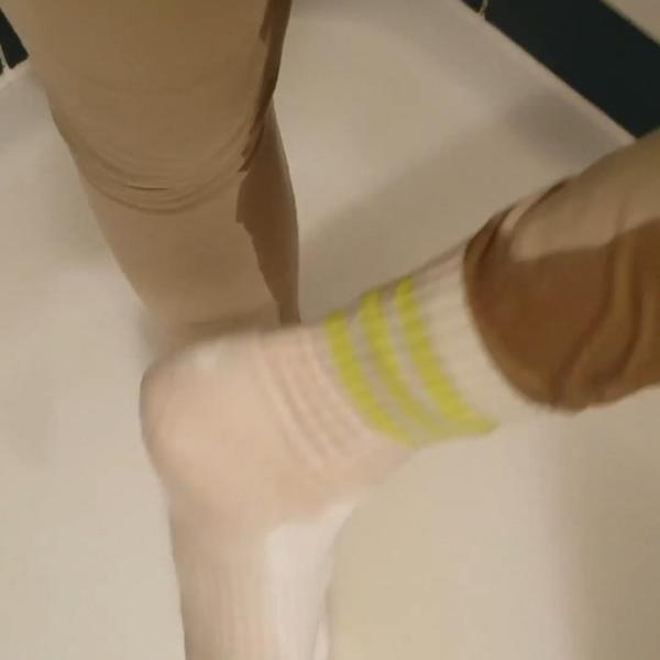 she wears white Adidas socks